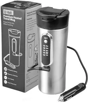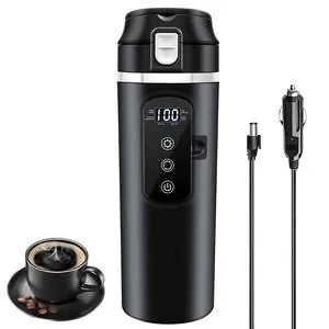 DC 12V/24V Car Travel Electric Kettle, 400ml Car Heating Mug with Anti-Spill Lid, Leak-proof, 304 Stainless Steel Liner Portable Coffee Tea Cup Up to 100 Variable Temp Control Bottle