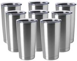 20oz Tumblers Bulk Stainless Steel Cups with Lid Double Wall Vacuum Insulated Coffee Mugs for Cold & Hot Drinks 8 Pack