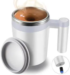 Self Stirring Mug, Electric Automatic Stirring Coffee Cup with 304 Stainless Steel, Rechargeable Travel Mug for Hot/Cold Drinks, Perfect for Coffee, Tea, Hot Chocolate, Office & Home Use(white)