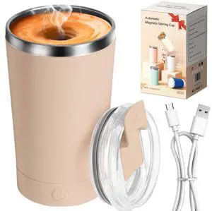 Self Stirring Coffee Mug With Lid Electric High Speed Self Stirring Mug 400ml Rechargeable Detachable Stainless Steel Self Stirring Cup for Coffee, Milk, Cocoa Christmas Gift(Apricot)