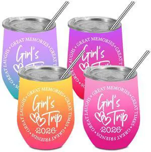 4 Pcs Girls Trip Wine Tumbler With Lid, 12 OZ Stainless Steel Tumbler, Girls Trip Gifts Favors Insulated Coffee Cup, Travel Mug Weekend Gifts for Friendship Vacation Bachelorette Party