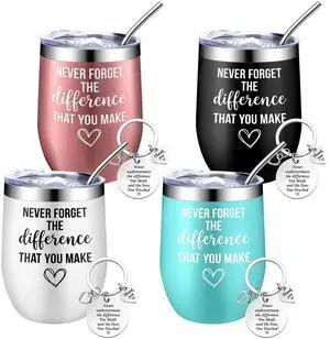 8 Pcs Employee Appreciation Gifts Never Forget The Difference That You Make 12 oz Stainless Steel Tumbler Keychain Thank You Gifts for Women Men Volunteer Team Coworker Staff Nurse Teacher
