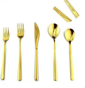 20-Piece Gold Silverware Set for 4,Heavy Duty 18/10 Stainless Steel Cutlery Set with Forged Stand Knife,Modern Flatware Utensils Set,Forks Spoons and Knives Set,Mirror Polished,Dishwasher Safe