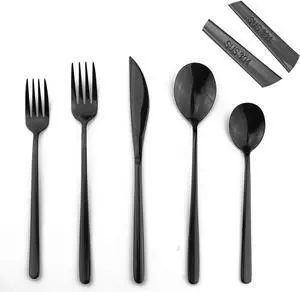 20-Piece Black Silverware Set for 4,Heavy Duty 18/10 Stainless Steel Flatware Set with Forged Stand Knife,Modern Cutlery Utensil Set,Forks Spoons and Knives Set,Mirror Polished,Dishwasher Safe