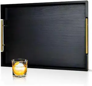 OurMiao 22 Inch Rectangle Black Ottoman Tray with Gold Metal Handles, Extra Large Wooden Serving Tray for Living Room, Coffee Table, Kitchen & Hosting