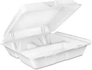 DART Large Foam Carryout Food Container 3-Compartment White 9-2/5x9x3 90HT3R