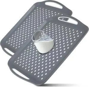 2Pcs Non-Slip Food Serving Tray with Handle 17.7×12.6 Inch Rectangle Gripping Nubs Food Trays Shatterproof Plastic Dinner Trays Non-Stick Food Platter Dishwasher Safe Lap Trays for Home Kitchen KTZCTP