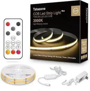 32.8ft 3000K Bright COB LED Strip Light Dimmable Warm White Indoor RF Remote Adhesive for Living Room Shelf Cabinet Kitchen 2 Rolls of 16.4ft