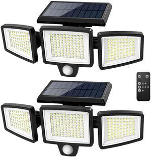 Solar Outdoor Lights 2500LM 210 LED Security Lights with Remote Control,3 Heads Motion Sensor Lights, IP65 Waterproof,270° Wide Angle Flood Wall Lights with 3 Modes(2 Packs)
