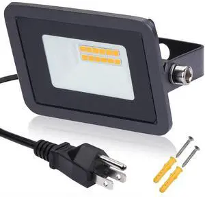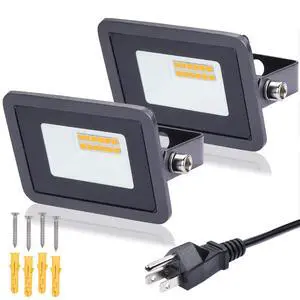 2Pack 10W Plug in LED Flood Light, Warm White LED Work Light, IP68 Waterproof Outdoor Floodlights for Terraces, Studios, Pathway