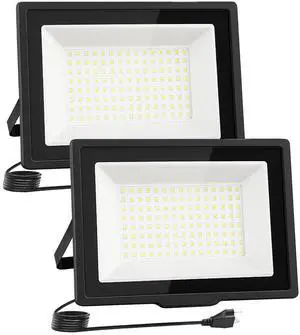 Flood Lights Outdoor,7200LM Bright Work Light Plug in,6500K Daylight White LED Flood Light Outdoor, IP66 Waterproof Exterior Floodlight for Yard Garage Stadium 2 Pack (60W)