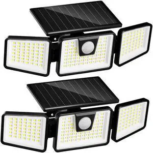 Solar Outdoor Lights 302 LED 3000LM, IP65 Waterproof Motion Sensor Outdoor Lights, 3 Heads Solar Security Flood Lights 270 Wide Lighting Angle with 3 Modes for Garden Patio Yard - 2 Pack