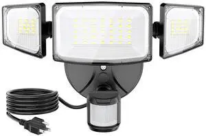 LED Security Lights Motion Sensor Outdoor Lights, 6500K Daylight, IP65 Waterproof, Dusk to Dawn, 3-Head Motion Detected Flood Light for Garage, Yard, Porch