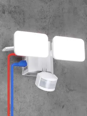 28W LED Security Light with GFCI Outlets, Motion Sensor & Dusk to Dawn Flood Lights Outdoor, Adjustable 2-Head, Wet Location, 5000K Daylight, ETL Listed, White
