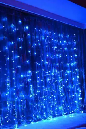 300 LED 12 Strand Twinkling Curtain Light Plug In Warm White Decorative String Lights for Home and Party Styling Blue