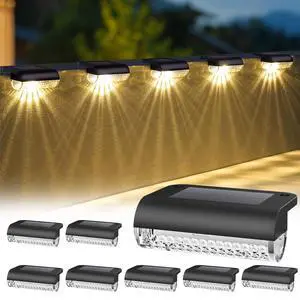 8 Pack Solar Deck Lights Outdoor, Solar Step Lights Waterproof Led Lights,3000K Warm White, Auto Dusk-to-Dawn, Low Profile, for Deck Steps Fence Patio