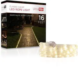 LED Rope Lights, 16ft Classic Clear Rope, Warm White Light 3000K, Indoor/Outdoor, Flexible, Linkable, Durable, Rope Lights Outdoor, 54503