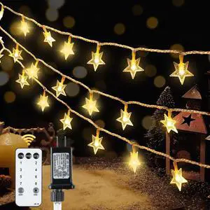 Star String Lights Plug in - 33 ft 100 LED Star Fairy String Lights with Remote and Timer, Waterproof for Bedroom Porch Wedding Party Patio Garden Tent Indoor Outdoor Décor, Warm White