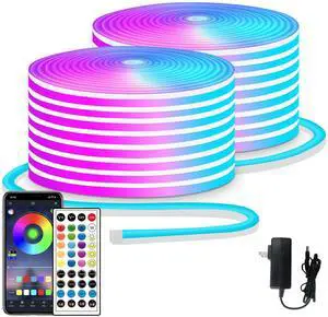 100ft LED neon Lights with Remote APP Control IP65 Waterproof Flexible Neon LED Strip Lights 24v RGB LED neon Rope Lights for Bedroom Room Outdoors Decor2 Rolls of 50ft