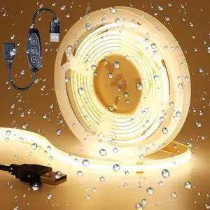 DC 5V USB COB LED Strip Light Warm White 3000K Dimmable IP65 Waterproof CRI 93+ USB Powered 6.6ft/2M 640LEDs High Brightness Flexible LED Tape Lights
