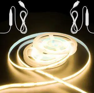 COB LED Strip Light 5V USB Dimmable LED Strip Light 3000K Warm White 3.28FT Rope Lights Flexible and Cuttable for Bedroom Wardrobe Kitchen Cupboard Staircase Home DIY Lighting 320LEDs (2 PACK)