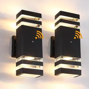 Solar Outdoor Wall Lights, 2 Pack IP65 Waterproof Morden Outdoor Acrylic LED Solar Wall Lantern, Wireless Exterior Fixture Decorative Wall Lamps for Porch Patio Hallway2 Pack