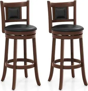 SlickBlue Set of 2 Inch Upholstered PU Leather Bar Stool with 360° Swivel Round Seat-29 inches