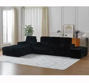 114*64'' Corduroy Sectional Sofa with Bluetooth Speakers,L Shaped Couch with Console,USB Charger,Cup Holders,Storage,Ottoman,Deep and Wide Seat Cloud Sofa for Living Room,Apartment,2 Colors