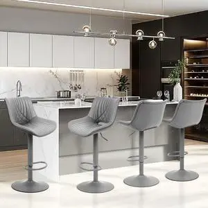 Black Bar stools Set of 4, Modern Swivel Bar Chairs with Thickened Cushion, Adjustable Upholstered Counter Height Barstools, Easy Assembly for Kitchen Counter Home Bar (PU, Black)