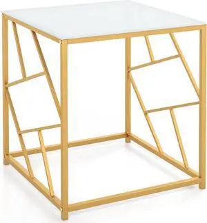 SlickBlue Square End Table with Tempered Glass Tabletop and Gold Finish Geometric Frame-Golden