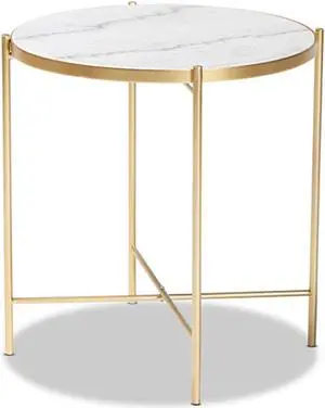 Baxton Studio Maddock Modern and Contemporary Gold Finished Metal End Table with Marble Tabletop