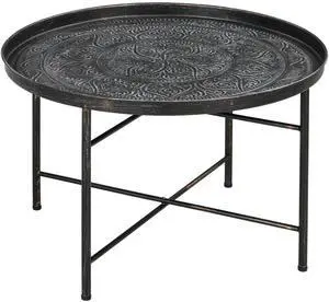 Table Set, 3pcs Set, Coffee, End, Side, Accent, Living Room, Black Marble Look Laminate, Black Metal, Contemporary, Modern- Finish: Black