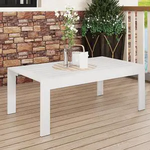 All-Weather Aluminum Outdoor Coffee Table, Modern Coffee Table for Outside, Rectangle Patio Coffee Table-White