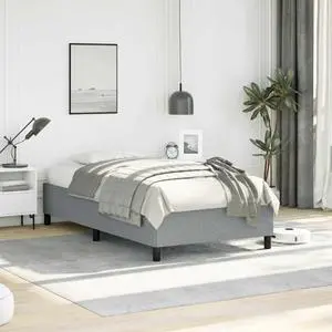 vidaXL Twin Size Bed Frame with Plywood Slats, Platform Bed Frame, Fabric Upholstered Mattress Foundation, No Box Spring Needed & Easy Assembly, Light Gray, without Mattress