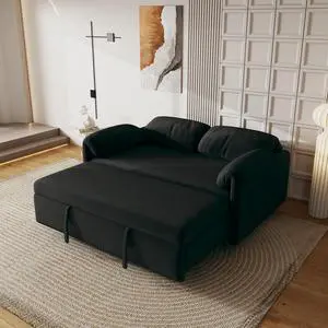 Sofa Centric Design: 54-Inch Velvet Sofa Bed with Dual Purpose - A Stylish Black Retractable Bed for Your Living Room