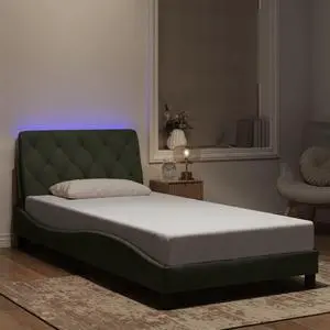 vidaXL Bed Frame with LED without Mattress "Hanko" Dark Gray 59.8"x79.9" Velvet