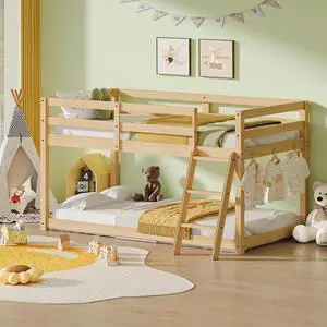 Metal Bunk Bed, Full over Full Floor Bunk Bed Frame,Heavy-Duty Bunk Bed for Kids, Teens, Adults, Noise-reduced Design, Black
