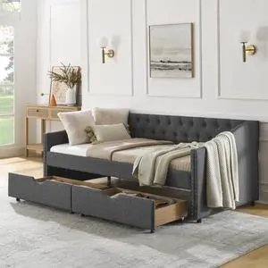 Twin Size Daybed with Drawers Upholstered Tufted Sofa Bed, with Button on Back and Copper Nail on Waved Shape Arms(81.5''x4''x30.5'')
