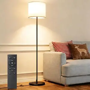 Dimmable Floor Lamps for LivingRoom with 12W LED Bulb, Foot Switch, Remote Custom Color Temperature Floor Light, Linen Shade Standing Lamps, Modern Tall Lamp for Office Bedroom Kid Room