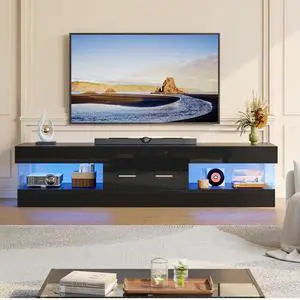 Bestier 67 Inch TV Stand for 75 Inch TVs, Entertainment Center with Storage Drawer and LED Lights - Glossy Black