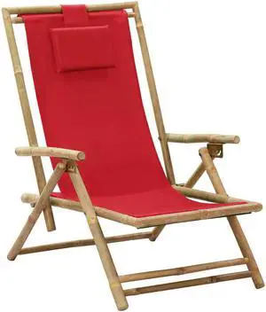 vidaXL Patio Deck Chair Patio Sling Chair with Headrest Red Bamboo and Fabric