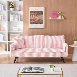 79.3 inches long, Corduroy Sofa, with 4 Matching Toss Pillows Sleek Design Spacious and Comfortable 3 Seater Couch for Modern Living Room,PINK