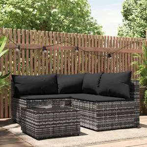 vidaXL Patio Furniture Set 4 Piece Outdoor Sofa and Table Poly Rattan Black