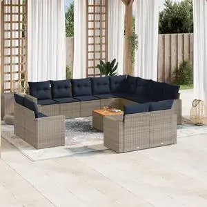 vidaXL Patio Sofa Set with Cushions Outdoor Furniture 13 Piece Gray Poly Rattan