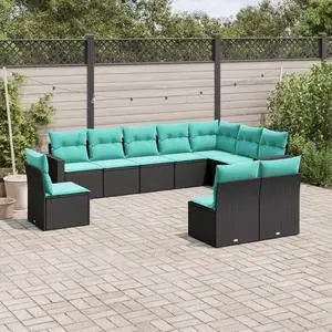 vidaXL Patio Sofa Set with Cushions Outdoor Furniture 10 Piece Black Poly Rattan