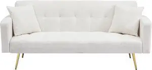 vidaXL Faux Leather Bed Frame Platform Bed , Scandinavian Style/Slats Support/No Box Spring Needed/Without Mattress/Easy Assembly, White Full Bed