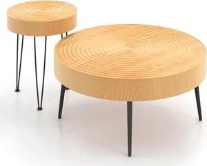 SlickBlue Set of 2 Solid Wood Farmhouse Round Coffee Tables-Ring Pattern