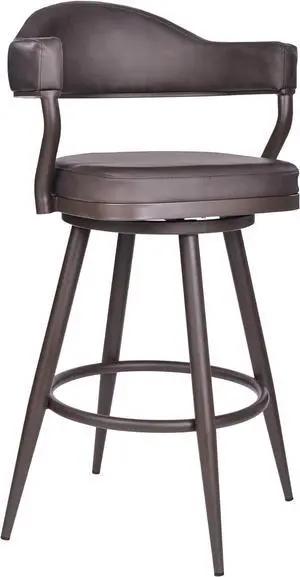 Armen Living Justin Modern Farmhouse 30" Seat Height Swivel Vintage Brown Faux Leather Bar Stool with Brown Metal Legs for Kitchen Island Counter