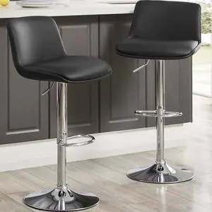 BestOffice Bar Stools Set of 2, Adjustable Swivel Bar Stools, Counter Height Bar Stools with Back PU Leather Armless Hydraulic Kitchen Counter Bar Stool (Black)