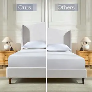 Hannah Upholstered Wingback Bed Size King / Tall 54" Headboard Upholstered King Bed / Premium Textured Canvas Chenille Look Ivory / Minimalist Designs / No Box Spring Needed / Easy Assembly / King